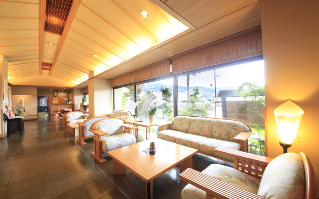 海に面した玄関を入ると海浜和風のおしゃれ感が広がる。そんな現代的な「粋」を大切にお客様をお迎えいたします。お連れ様とのお待ち合わせにもご利用ください。