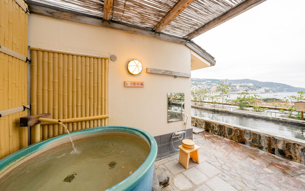 屋上にあるカメ風呂で熱海の夜景をひとり占め。
