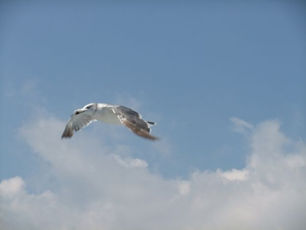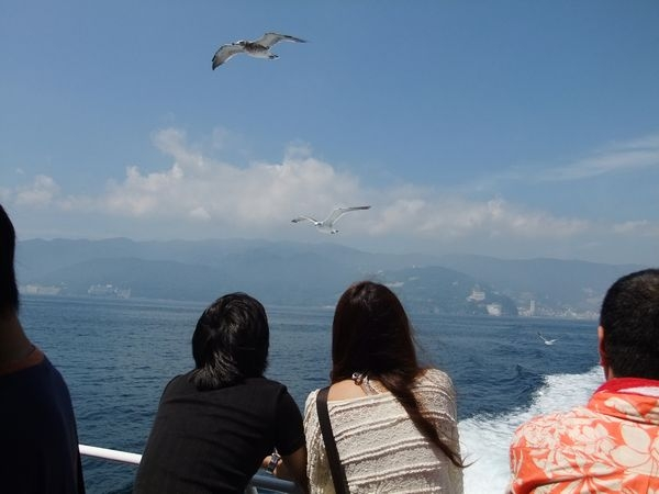 船で25分 船に乗っている時は写真の様にカモメ?ウミネコ?