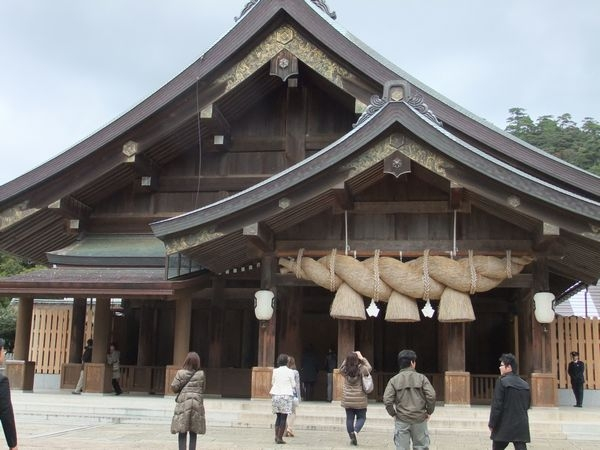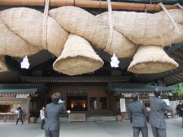 出雲大社では、このしめなわにお金を投げて乗せると良い事があるそうです。