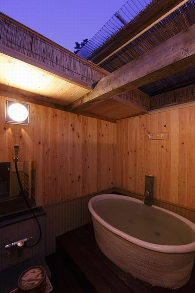 景色は望めないお風呂ですが、雰囲気を出し、また、お風呂を出た所にプライベートスペースを作り、自分達だけの時間を更に楽しめる。