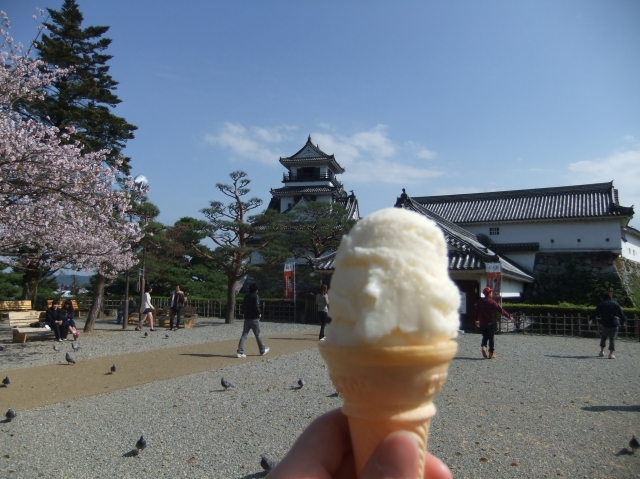 ↑高知城に桜。そして高知の有名な「アイスクリン」ですよ。お店によって多少味が違う様ですね♪