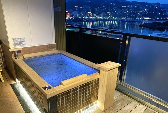 2021年6月に露天風呂をリニューアルした【リニューアル露天風呂付客室】では、湯船がライトアップしちゃうなんとも幻想的な仕様♪