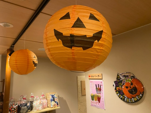 送迎バスやフロントロビーには可愛いハロウィン飾りが♪