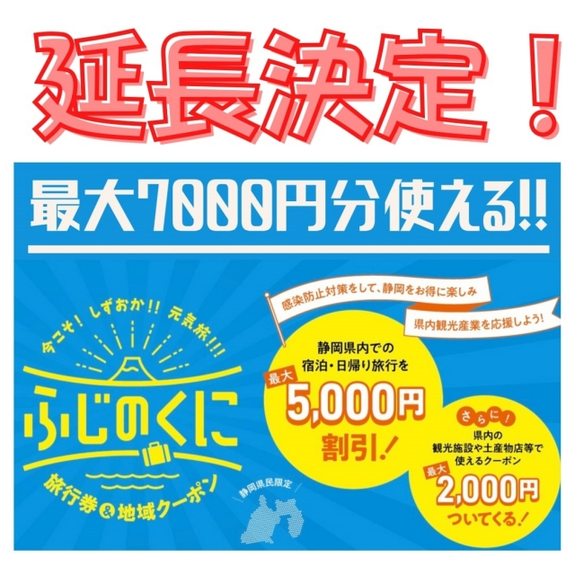 さて!もうご存知の方も多いですが、昨日7月15日より、【しずおか元気旅】の県民割が延長スタートとなりましたアアアアアア☆