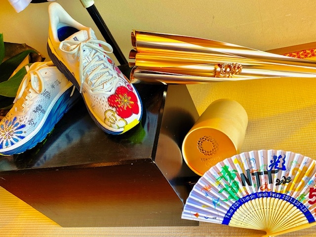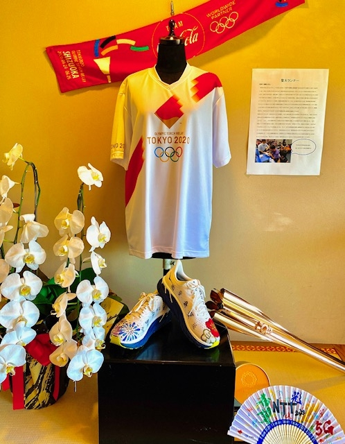 なんと当館ではオリンピックの聖火ランナーで実際に着用された【ユニフォーム】【トーチ】【シューズ】が期間限定で飾られていたんです♪