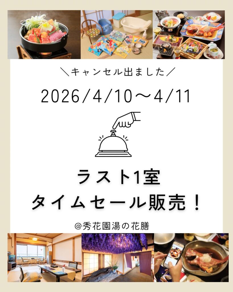 赤字覚悟のタイムセール!!なんと1泊2食付き【お部屋食】×【露天風呂付客室】で・・・【26,900円~】!?